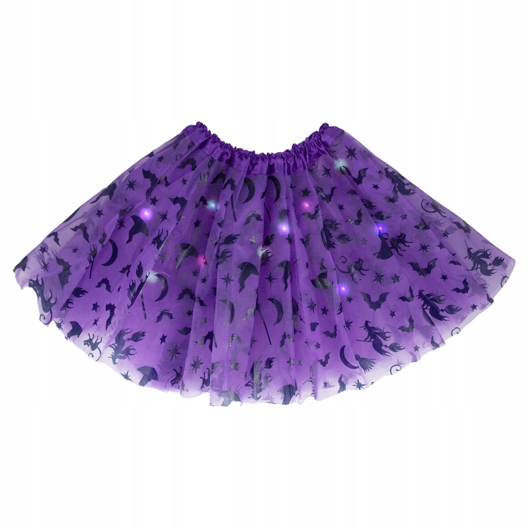 СВЕТЯЩАЯСЯ СВЕТОДИОДНАЯ ЮБКА-ПАЧКА ИЗ ТЮЛЯ ДЛЯ ДЕТЕЙ 3-9 ЛЕТ ОСЕННИЙ БАЛ НА ХЭЛЛОУИН