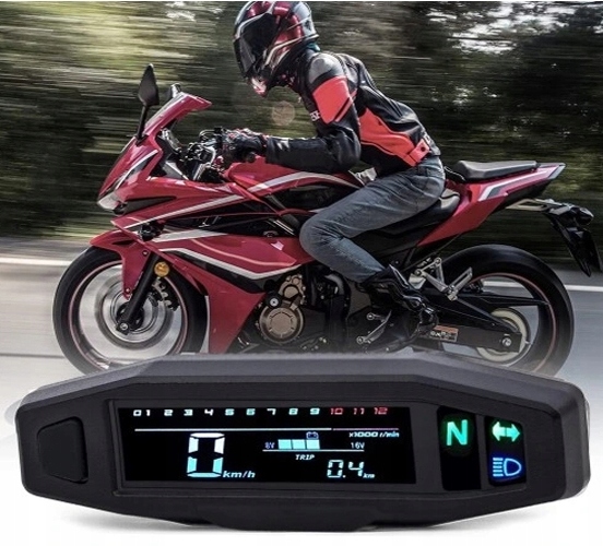 Спидометр предлагает широкий спектр параметров мониторинга, таких как спидометр, одометр, тахометр, указатель уровня топлива, ЖК-дисплей и другие параметры, важные во время езды на мотоцикле. Это позволяет пользователю получить исчерпывающую информацию о его вождении.
