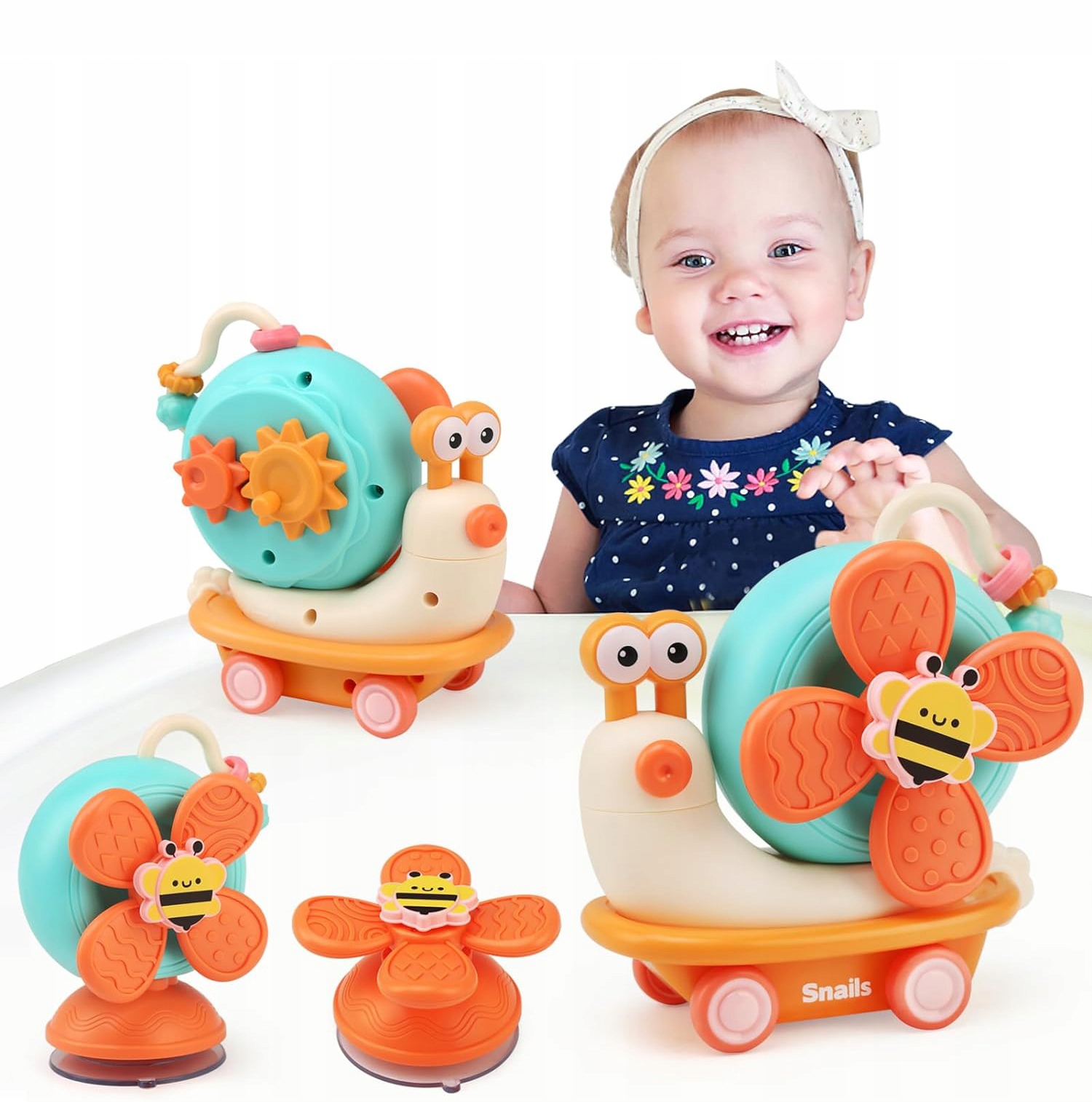 🎉🎉 [Многофункциональные игрушки Монтессори] - игрушки на присосках с разной фактурой, игрушка машинка Push and Go, крутящиеся шестеренки и скользящие бусины; голову улитки можно вращать, а детали можно легко и свободно собирать!