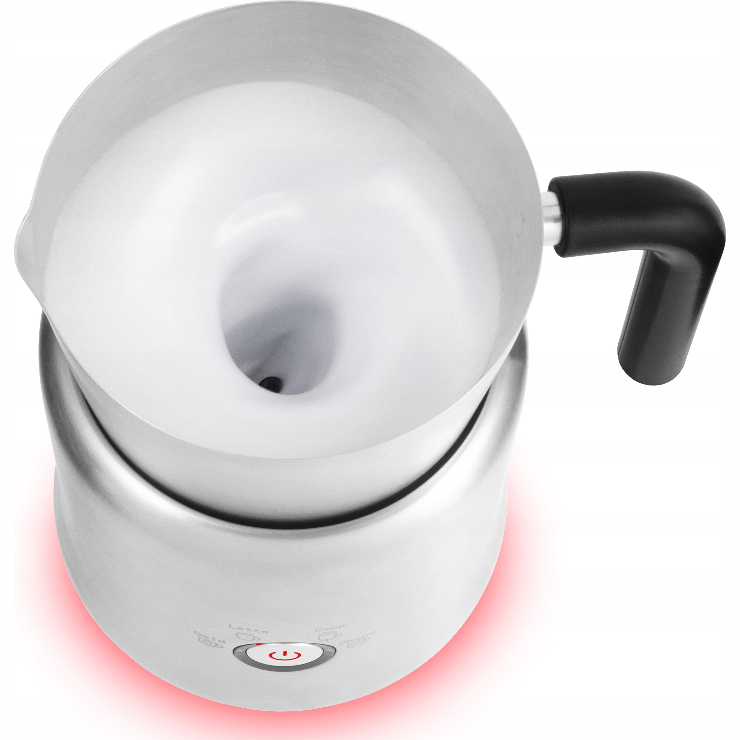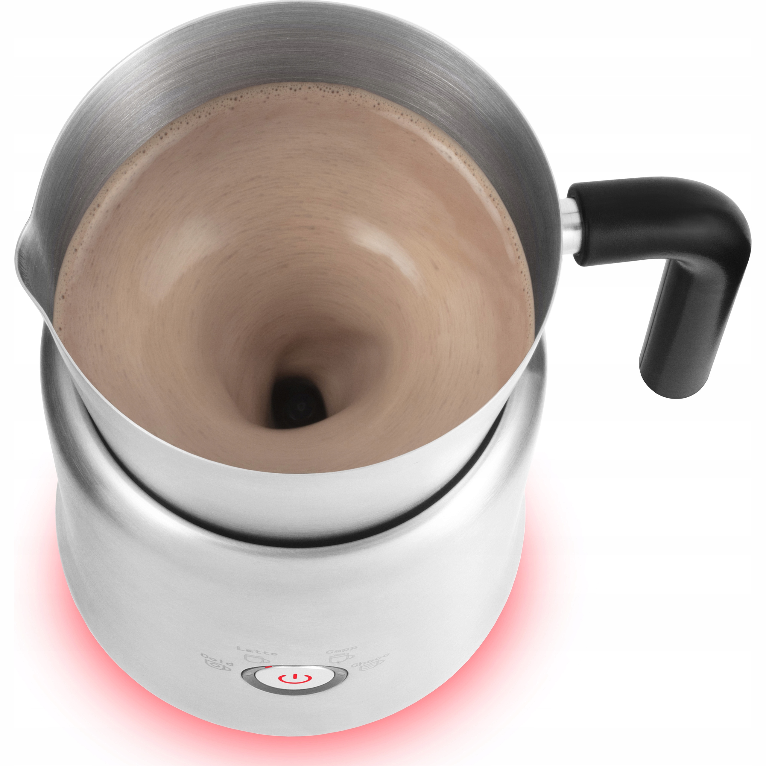 Вспениватель молока Catler MF 610 — это сочетание современности и функциональности. Устройство может работать в четырех различных режимах. С его помощью мы можем приготовить не только холодную пенку, но и шоколад, капучино или кофе латте. Устройство имеет емкость 0,7 литра, а его внутренняя часть имеет хорошо видимые патрубки, облегчающие заправку. Во время работы мы можем наслаждаться стильным светодиодным освещением. Как только пена будет готова, устройство автоматически выключится и оповестит нас звуковым сигналом.