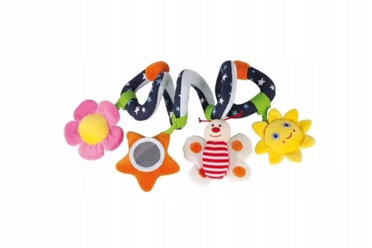 На текстильной спирали висят 4 красочных мотива, которые побуждают детей брать их.