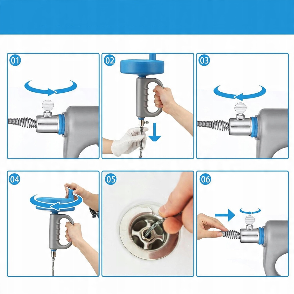Спираль с буром подходит для устранения типичных засоров труб, вызванных волосами, бумагой, влажными салфетками, остатками пищи, жиром. и т. д.