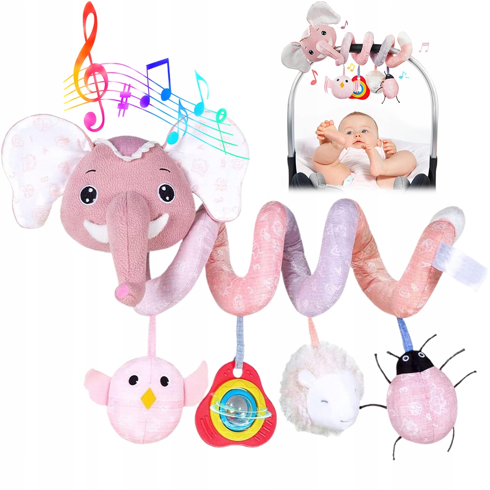 СПІРАЛЬКА ДИТЯЧА СЛОНИК РОЖЕВИЙ 4 СЕНСОРНІ ІГРАШКИ ДЛЯ АВТОКРІСЛА