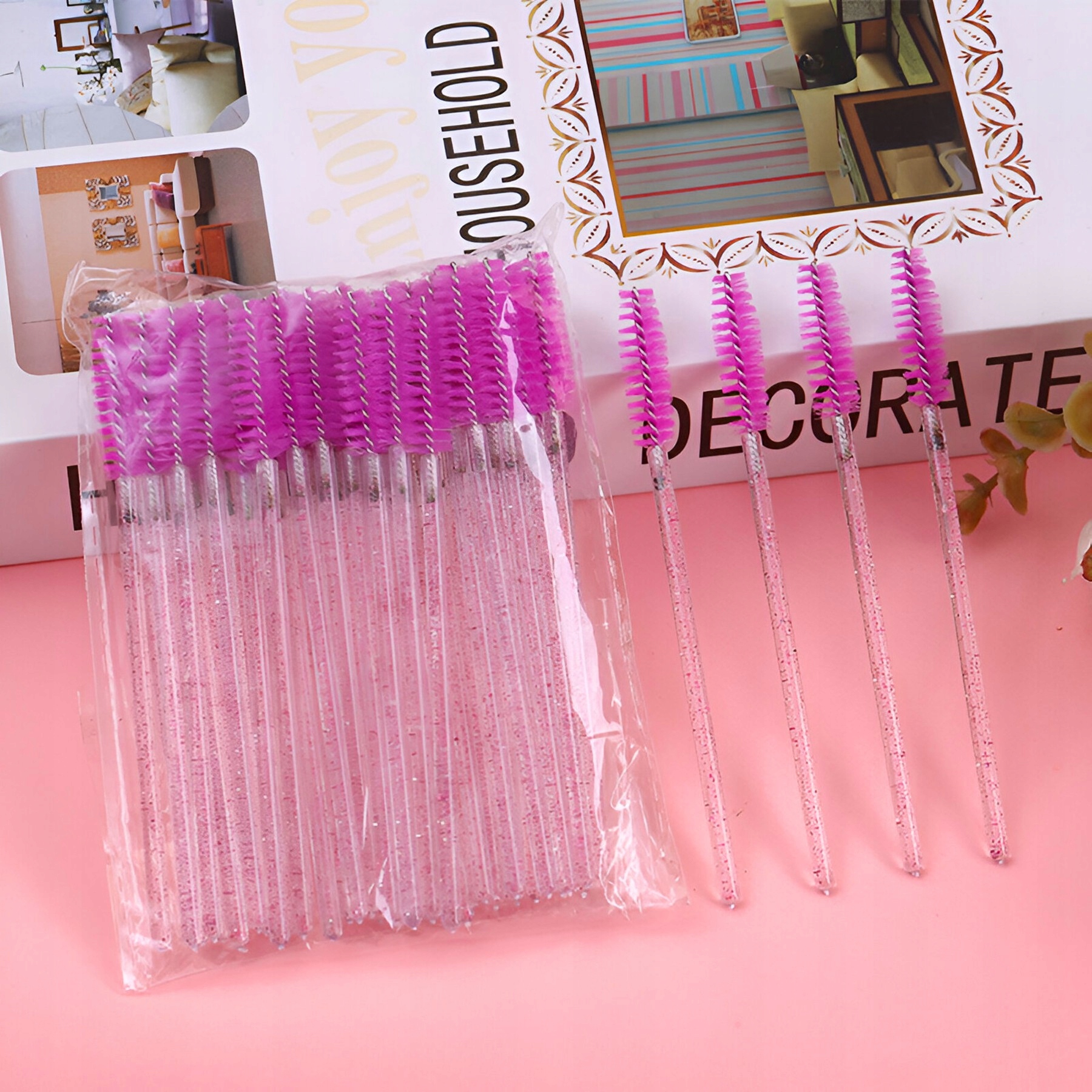 Профессиональная щеточка для расчесывания ресниц и бровей, идеальна как для натуральных, так и для искусственных ресниц. Спиральный кончик не повреждает ресницы. Кисть чрезвычайно прочная и украшена блестками.