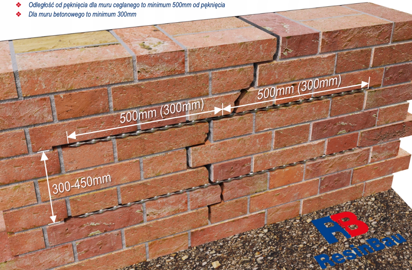 ❖ Расстояние от трещины для кирпичной стены – минимум 500 мм от трещины