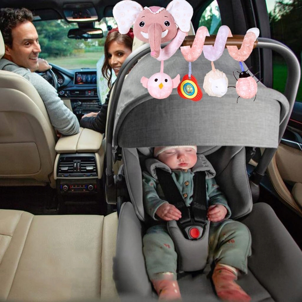🌟 Подвеска из розового слона для тележки, кроватки, автомобильного сиденья - интерактивная сенсорная игрушка с 4 аксессуарами 🐘✨