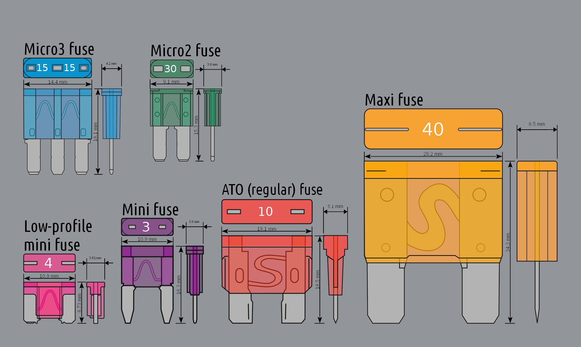 Разветвитель тока позволяет подключить дополнительное устройство, защищенное предохранителем MIDI в установке автомобиля/мотоцикла с предохранителем MINI.