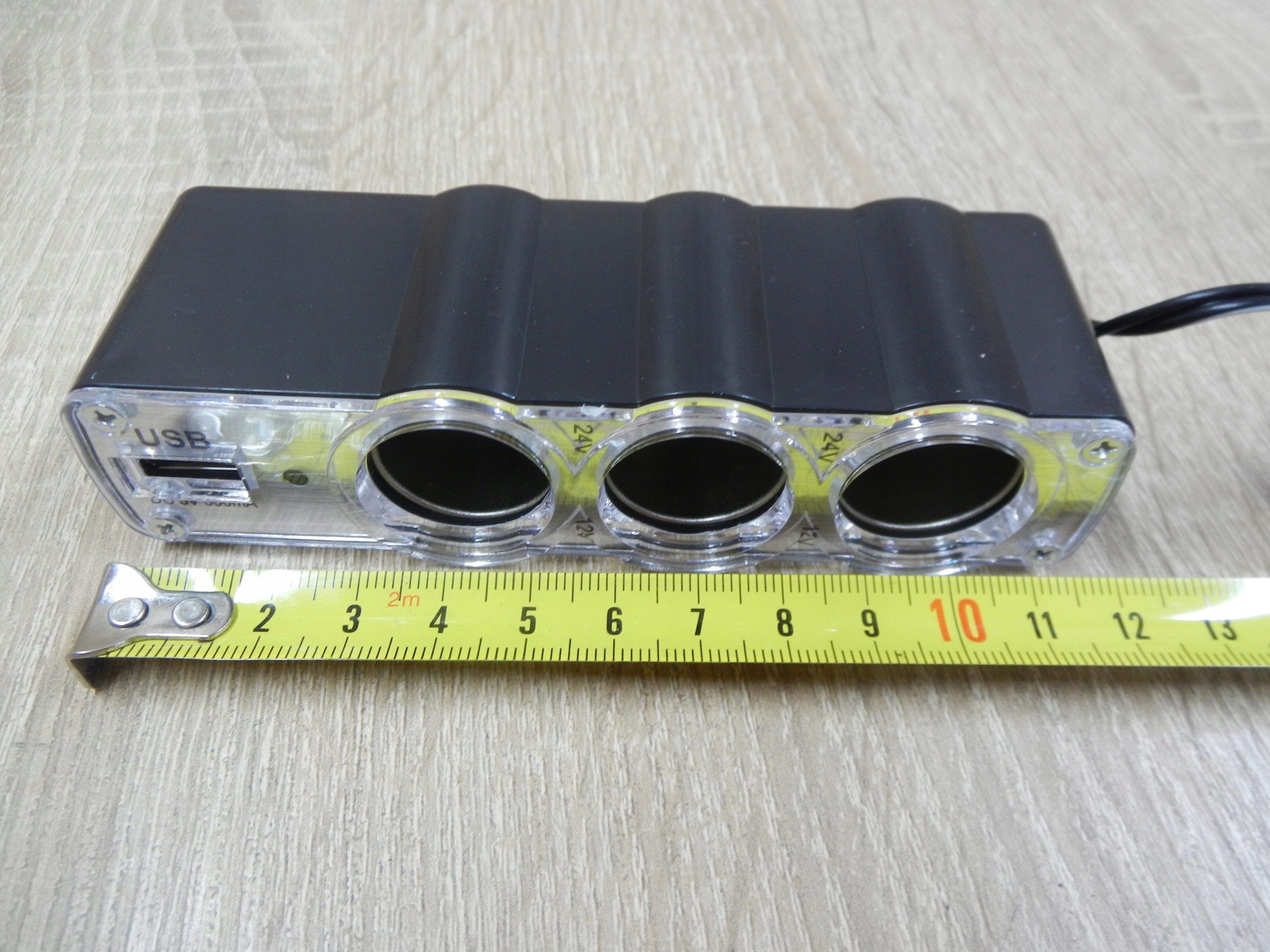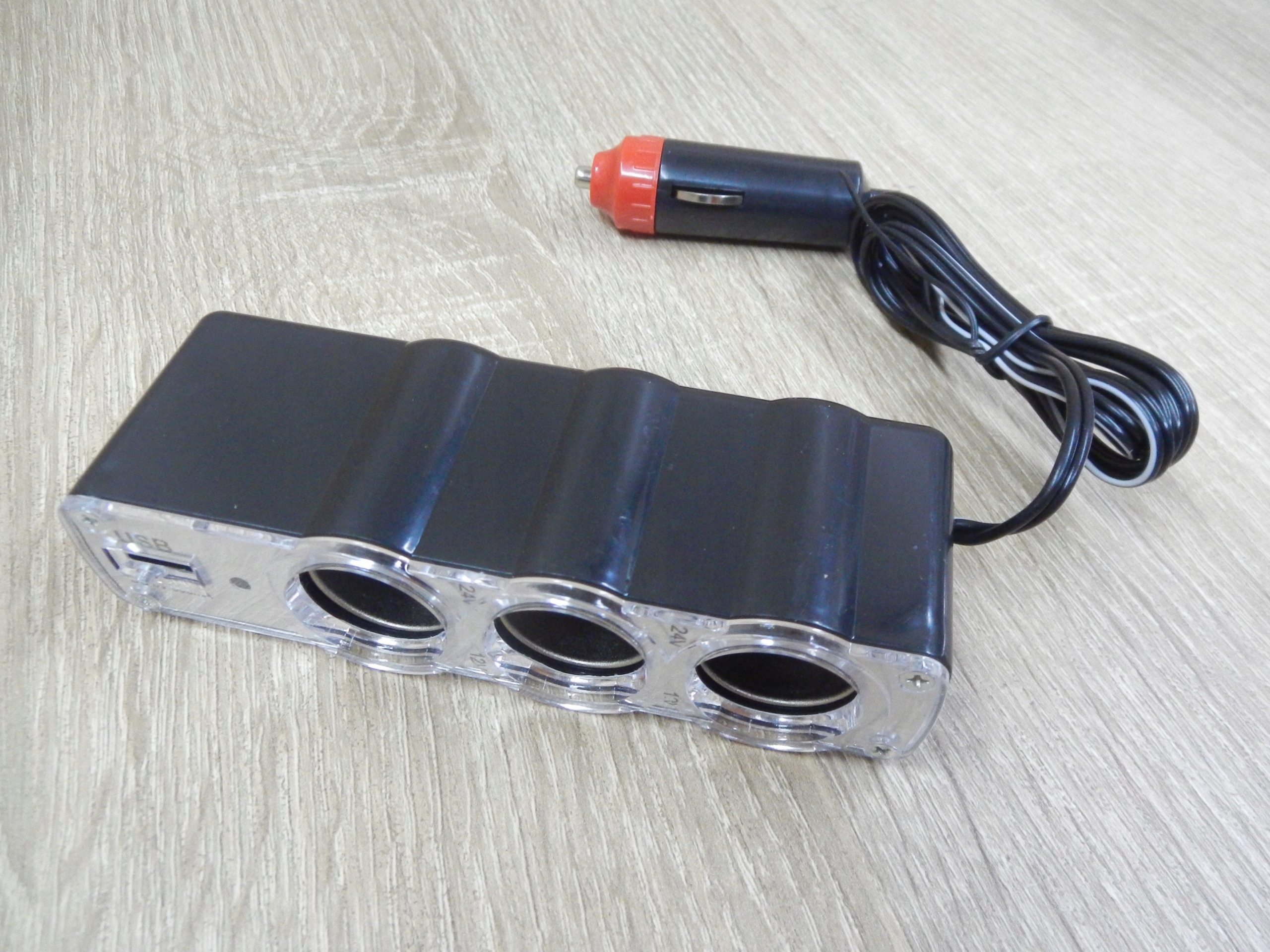 Спліттер прикурювача 3 входи 12В + USB кабель