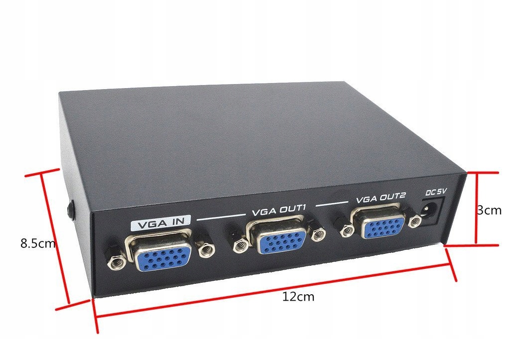 VGA Splitter 1 x 2 — высококачественный продукт, позволяющий разделить сигнал VGA на 2 внешних приемника и просматривать изображение одновременно на 2 мониторах.
