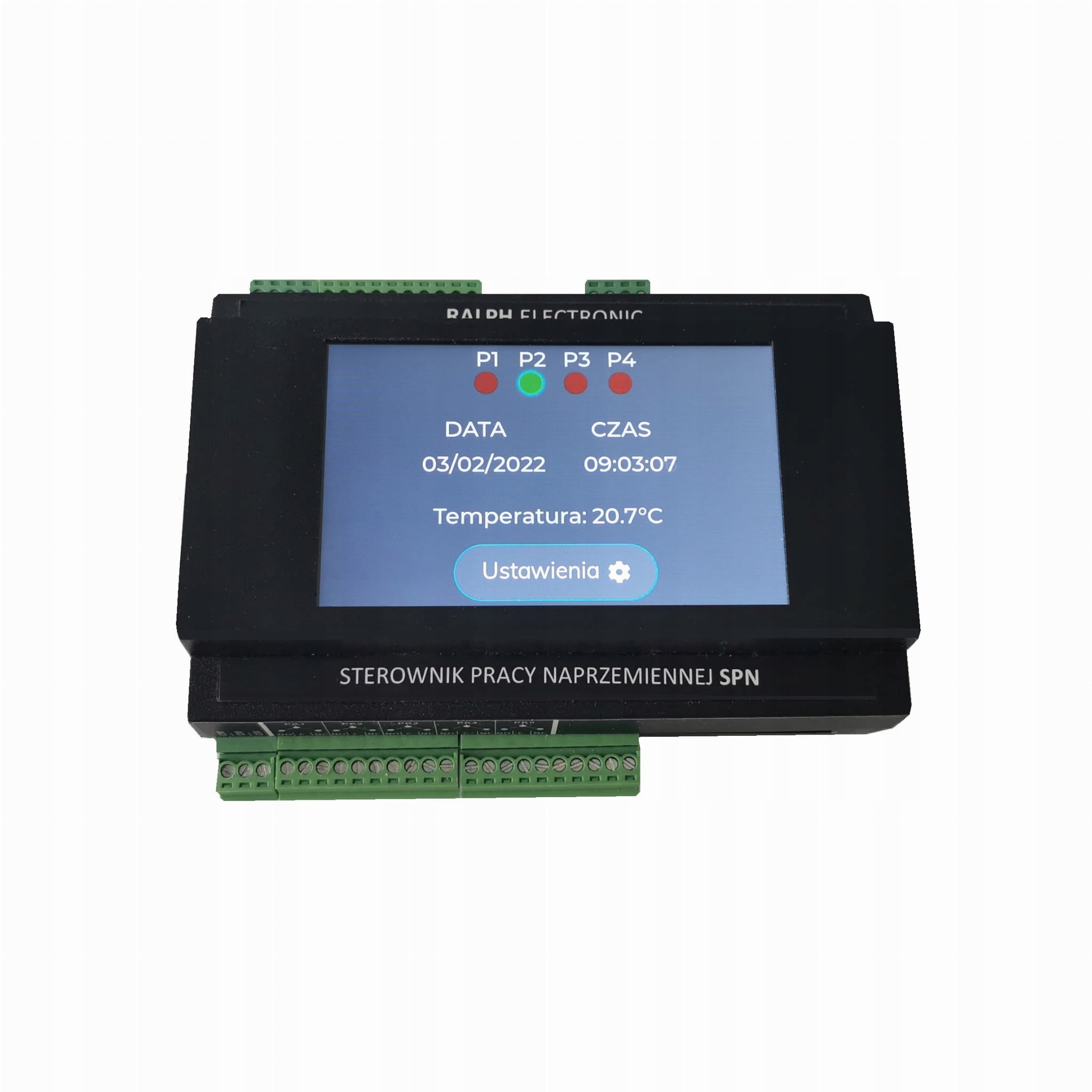 <р> Контроллер работы поочередного тура SPN Система СПН используется для управления кондиционером (с помощью реле) в попеременном (ротусном) порядке. Контроллер прост и интуитивно понятен в использовании, а установка выполняется быстро и без проблем.Программирование осуществляется с помощью сенсорного цветного ЖК-экрана.