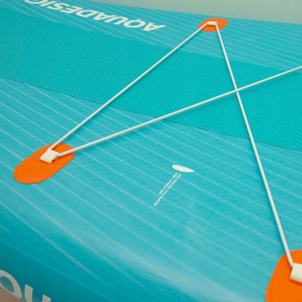 - Плата SUP характеризуется технологией Light Dropstitch с помощью ленты затягивания из ткани PVC 1100 DTEX, которая влияет на ее прочность.