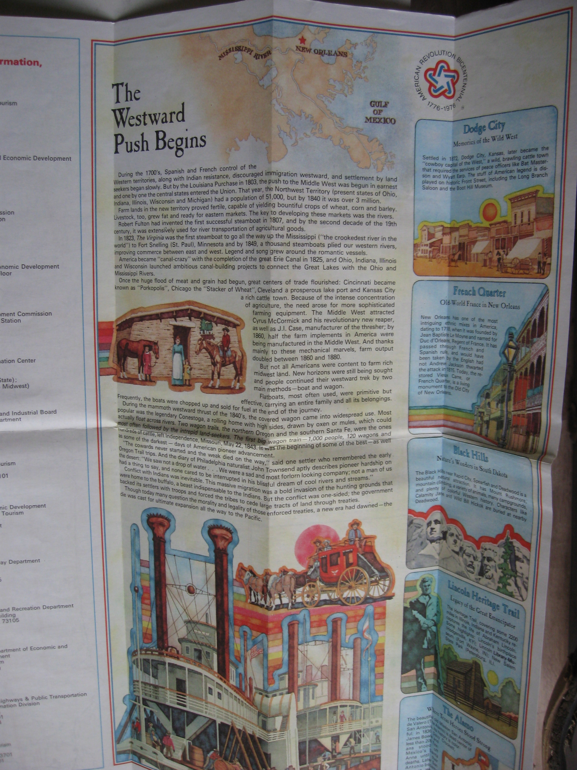 США центральная. Дорожная карта, посвященная двухсотлетию (Автомобильная карта центральной части США 1976 г.