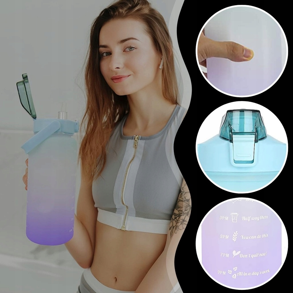 💜 Mint-Purple 2l Мотивационная бутылка с водой с ручкой и соломой h1>