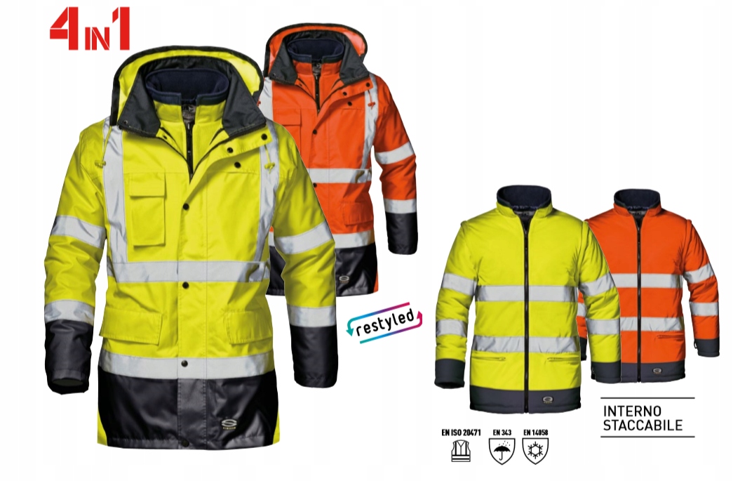 АВТОМАГИСТРАЦИЯ ДЖАККА Модель SPLIT EN ISO 20471 КЛАСС 3 EN 343 EN 14058 — это куртка 4-в-1 с возможностью отстегнуть рукава, чтобы ее можно было использовать как жилет, отстегнув подкладку, чтобы ее можно было использовать как отдельную куртку с флисом, и отстегивание капота.