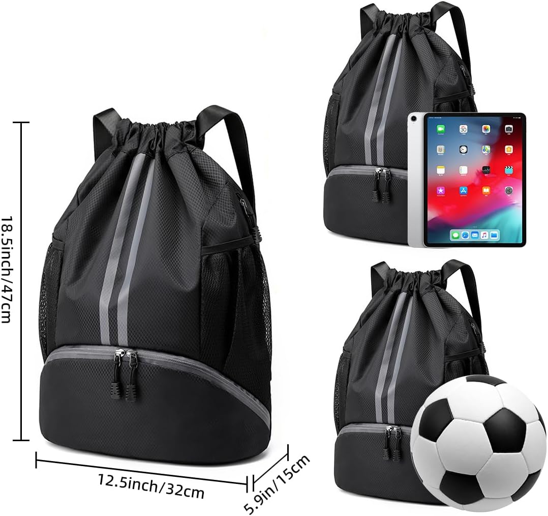 Наша сумка на шнурке с застежкой-молнией изготовлена из оксфордской ткани высокой плотности, которая обладает превосходными водонепроницаемыми и устойчивыми к морщинам свойствами, износостойкая. , устойчив к царапинам и легко чистится, подходит для различных видов активного отдыха, таких как плавание, фитнес, шоппинг, тренировки, бег, путешествия, пляж, кемпинг, баскетбол, футбол, волейбол и т. д.