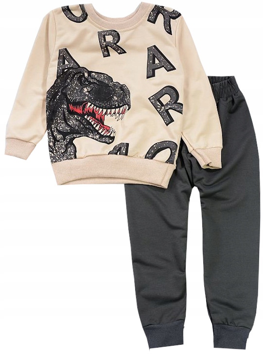 СПОРТИВНЫЙ КОМПЛЕКТ ДЛЯ МАЛЬЧИКОВ СВИТШОТ ДИНОЗАВРЫ БРЮКИ графит 4/5 J621G
