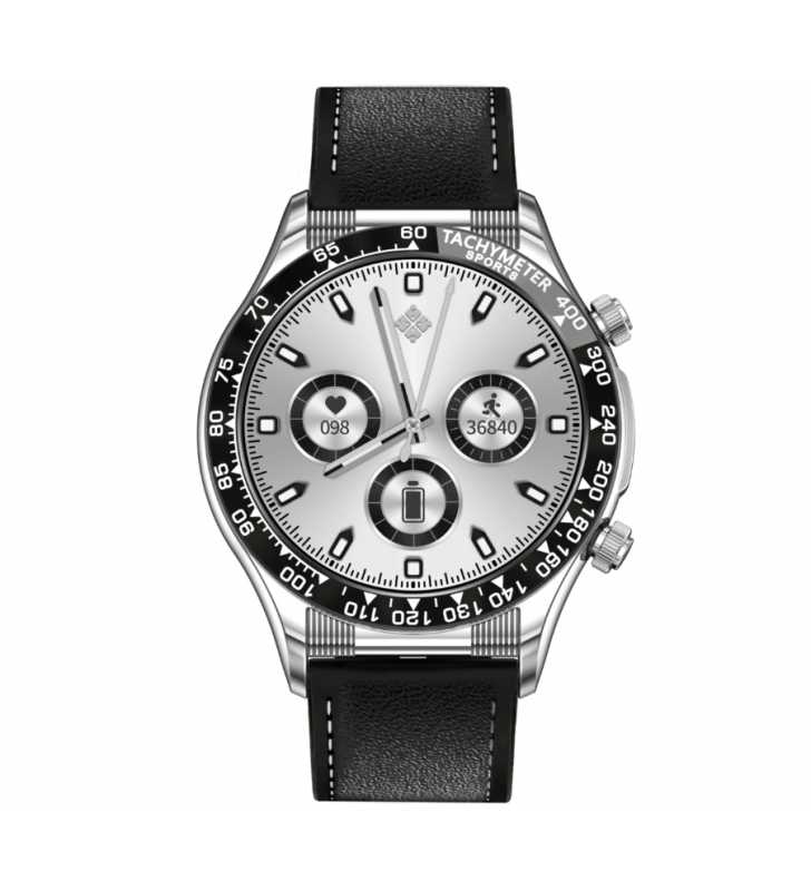 Цвет: серебряный корпус + черный кожаный ремешок