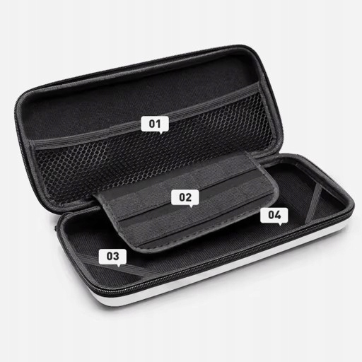 Внутри 10 игровых слотов - благодаря этому вы всегда можете иметь свои любимые названия с вами. Кроме того, сетчатый карман, прикрепленный на молнии, позволяет хранить небольшие аксессуары: наушники, USB -кабель, зарядное устройство, адаптер или даже небольшой мощный банк. Все заказано, в одном месте.