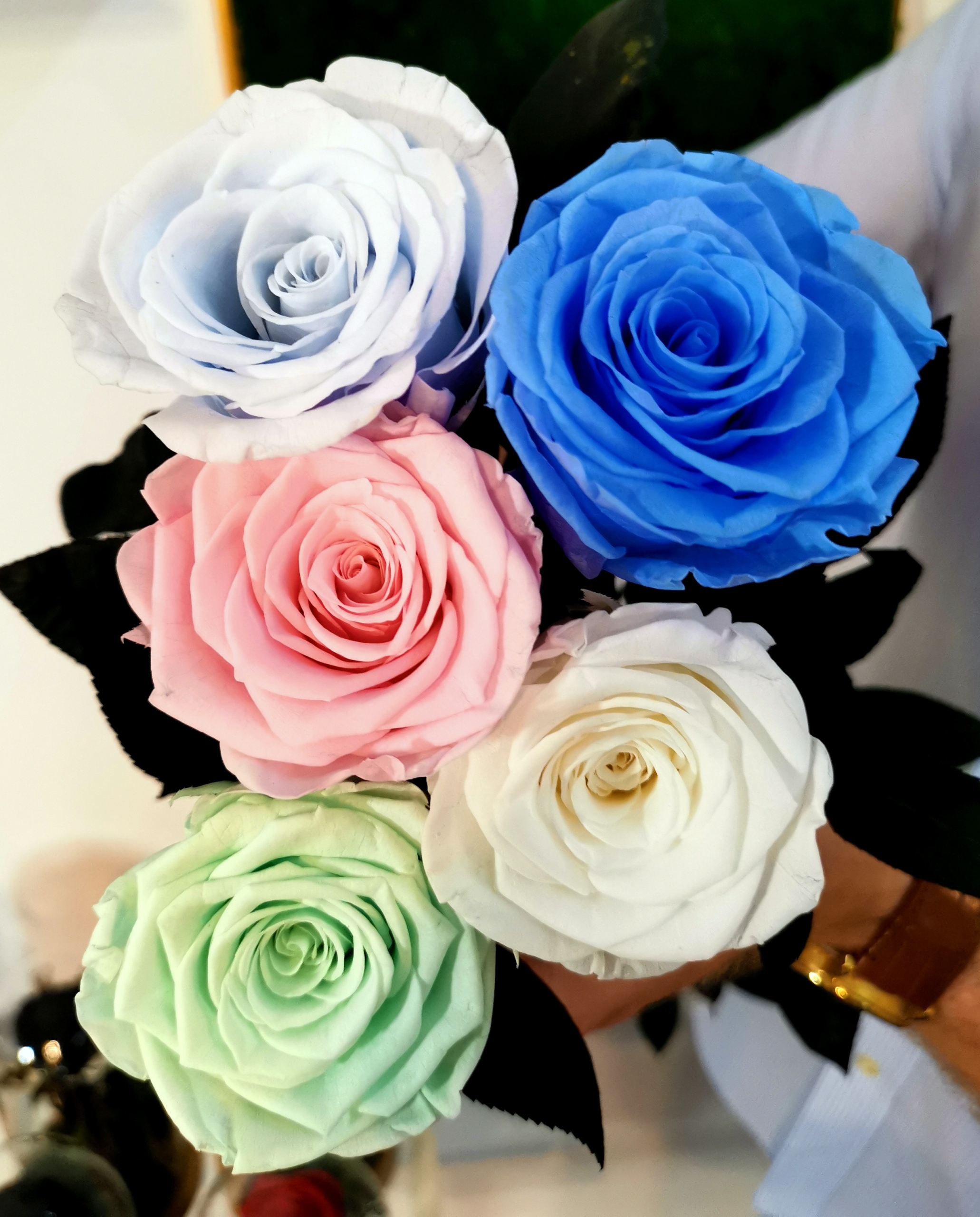 Цвета роз доступны по запросу: синий, мятный, белый, розовый , синий, черный, голубиный