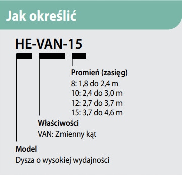 - Форсунки HE-VAN обеспечивают уникальную форму струи разработан специально для обеспечения превосходного покрытия и устойчивости к ветру.
