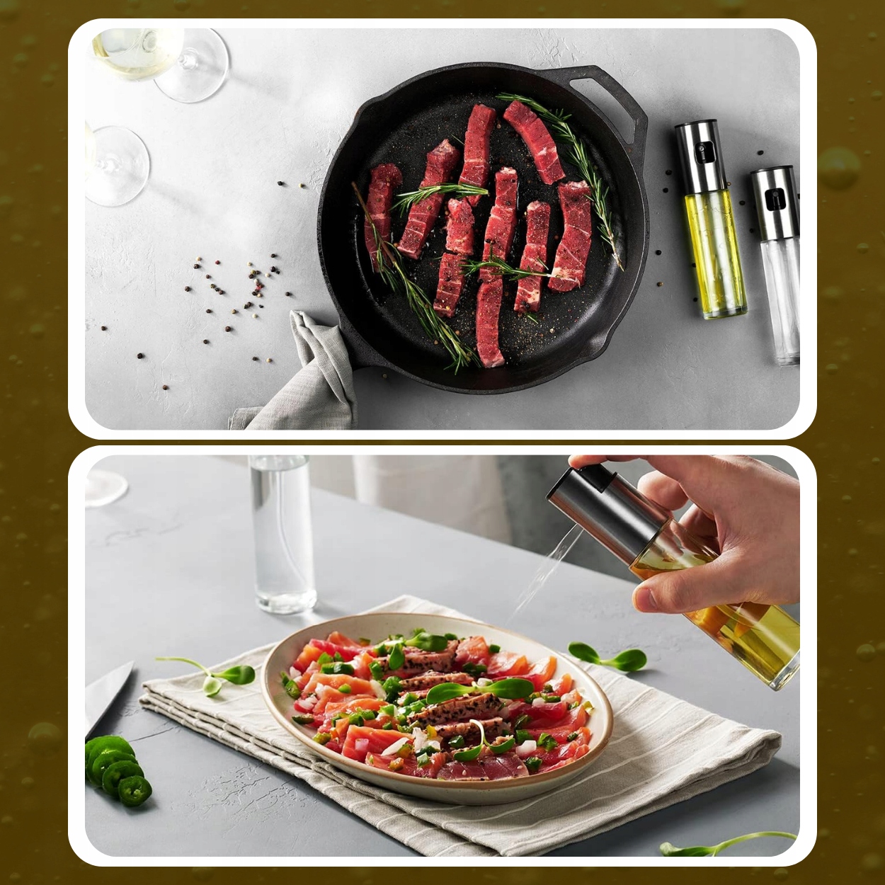 ✔️ Точный распылитель✔️Наш распылитель гарантирует точное распыление жидкостей, что позволяет точно дозировать специи. Вы можете легко контролировать количество масла, уксуса или соуса, чтобы придать блюдам нужный вкус и аромат. Благодаря этому ваши блюда всегда будут идеально приправленными.