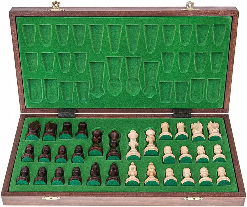 Набор турнирных шахмат № 4 Классическая шахматная доска изготовлен вручную из древесины бука и березы. Центр покрыт полуглянцевым лаком, элегантная вставка. Размеры кассеты 410 х 410 мм. В сложенном виде 410 х 205 х 50 мм. Фигурки точеные, лакированные, проклеенные фетром Staunton 4. Высота по вертикали 40 мм, король 76 мм. В нижней части фигур используются гири для улучшения устойчивости на шахматной доске. Предупреждение. Использовать под непосредственным наблюдением взрослых. Предупреждение. Не подходит для детей до 14 лет. Для использования под присмотром взрослых