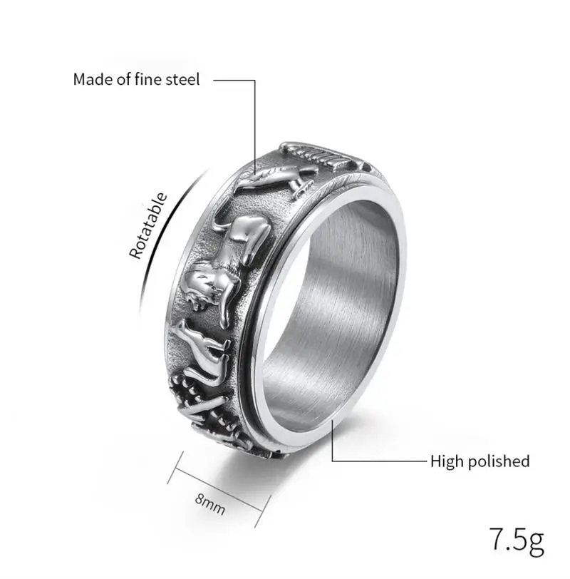 Полоска с символикой свободно вращается на корпусе кольца