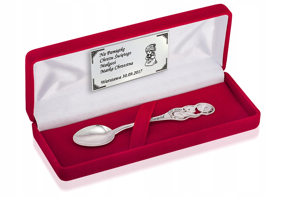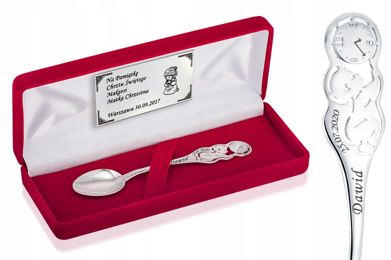 SREBRNA ŁYŻECZKA CHRZEST CHRZCINY GRAWER DEDYKACJA