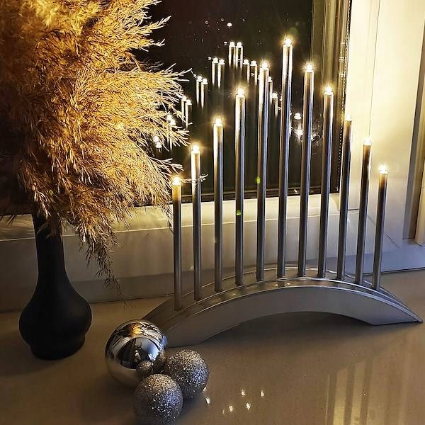 Srebrny świecznik adwentowy - Dekoracja świąteczna - 11 DIOD LED
