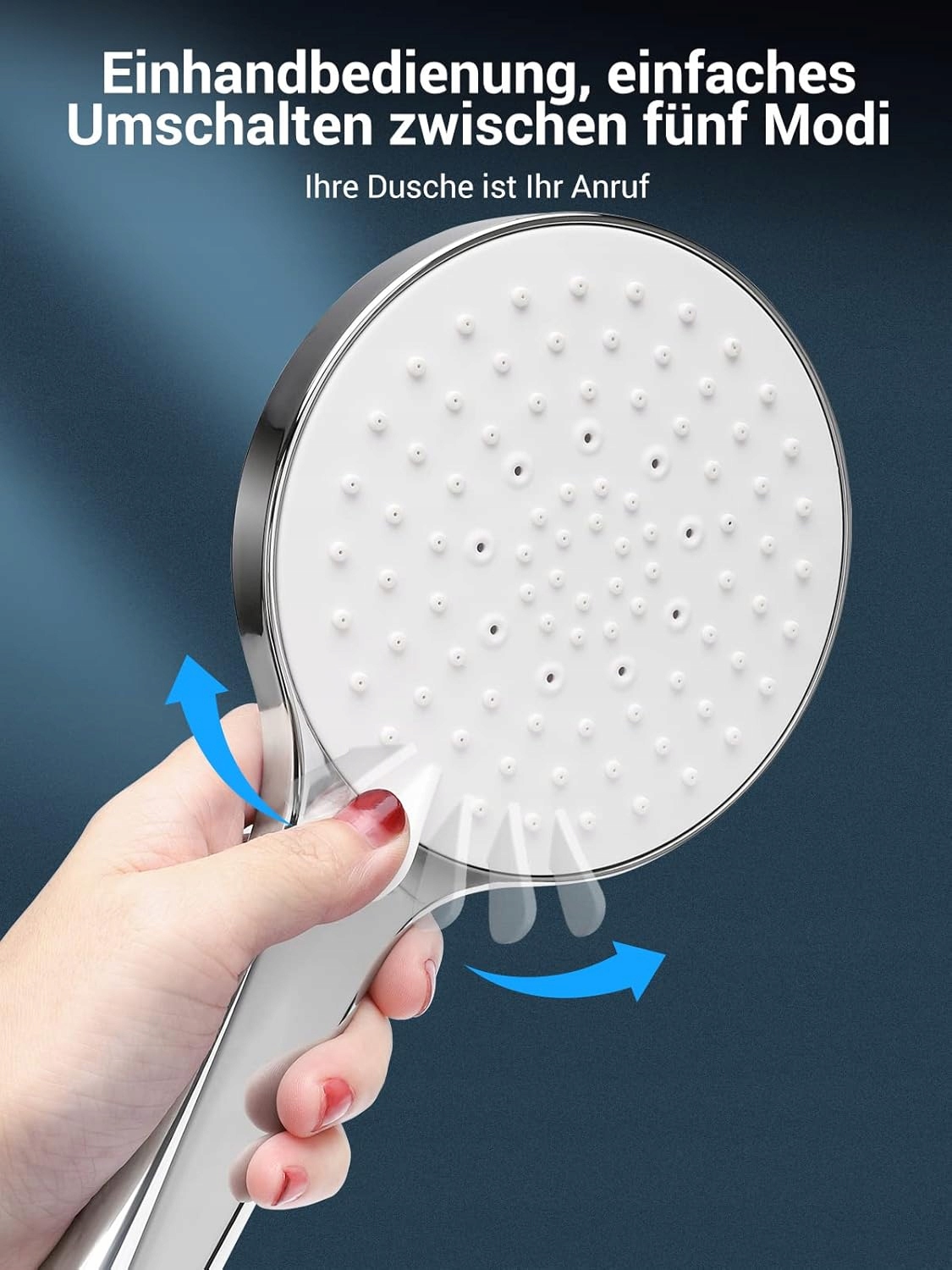 С помощью переключателя на насадке душа вы можете легко переключать 5 режимов с помощью одной кнопки: массаж, тропический душ, струя и очистка под высоким давлением. Каждый режим струи доставит вам и вашей семье удовольствие от купания и прекрасные впечатления