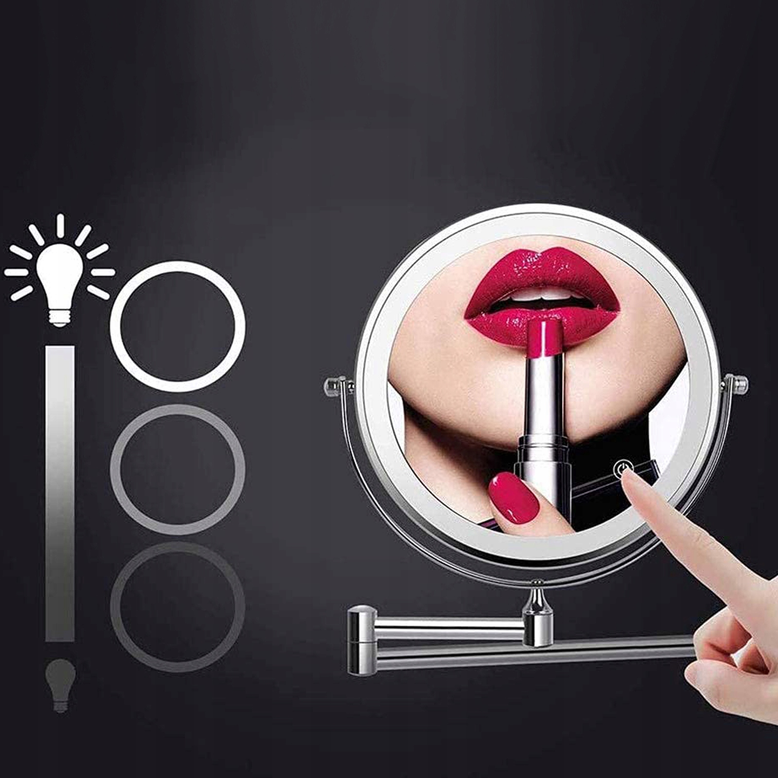 3. 💝【Поворотный и складной дизайн на 360°. Увеличительное зеркало для макияжа с подсветкой крепится на стену и имеет выдвижной кронштейн. Вращение на 360 градусов обеспечивает удобный угол обзора при нанесении макияжа, бритье или ношении контактных линз. Когда он не используется, его можно сложить к стене, чтобы сэкономить место.