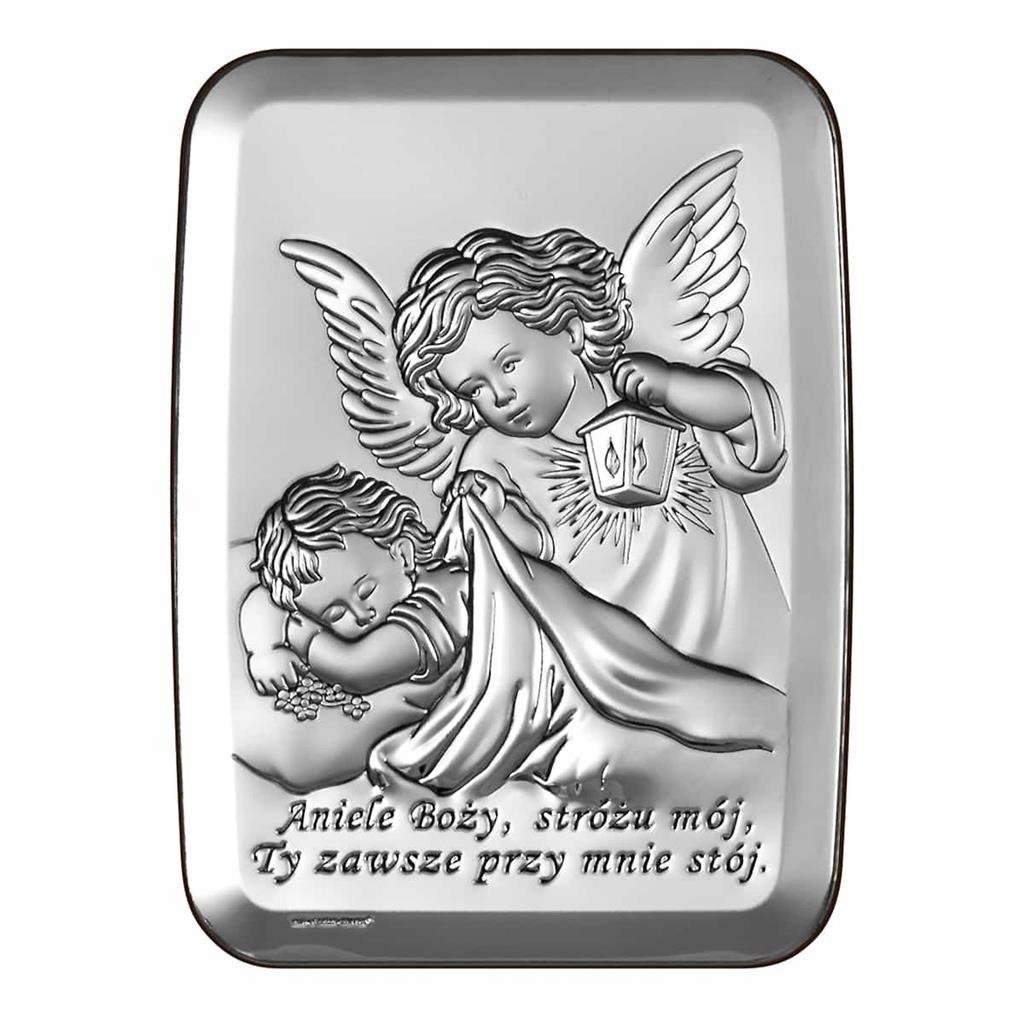 Серебряная картина Ангел с фонарем, с надписью: «Мой ангел-хранитель Божий, ты всегда рядом со мной». Идеально подойдет в качестве сувенира ко Святому Крещению.