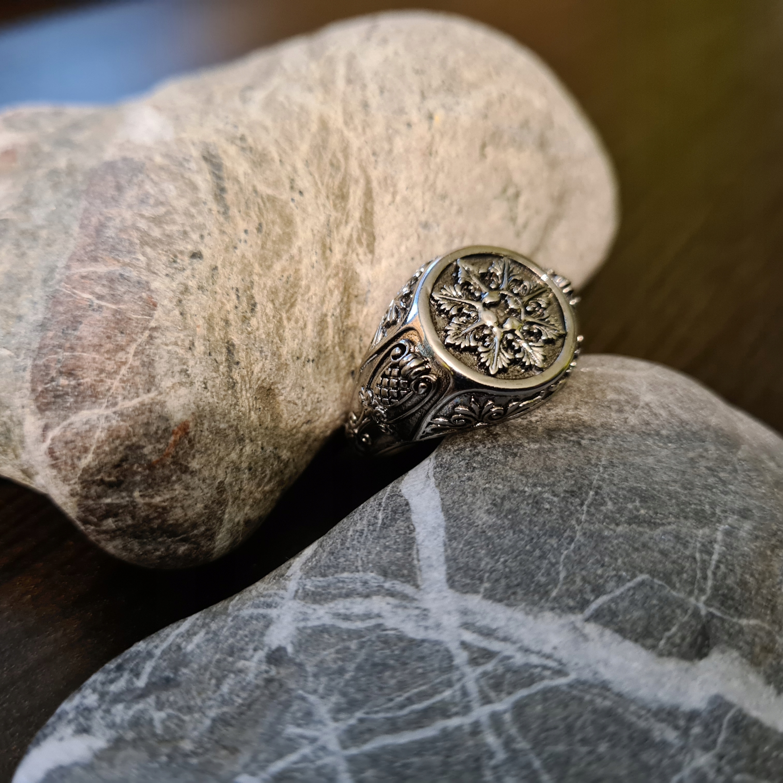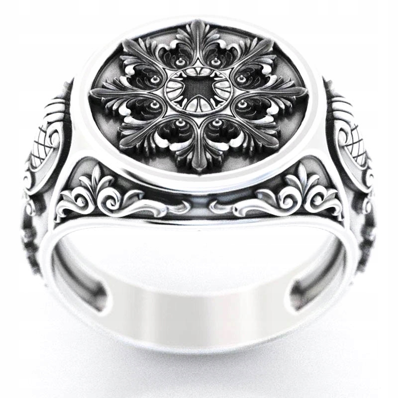 СРІБНА КІЛЬЦЕ-ПЕЧАТКА З ПРИКЛАДАМИ КІЛЬЦЕ-КВІТКА МАНДАЛА R15