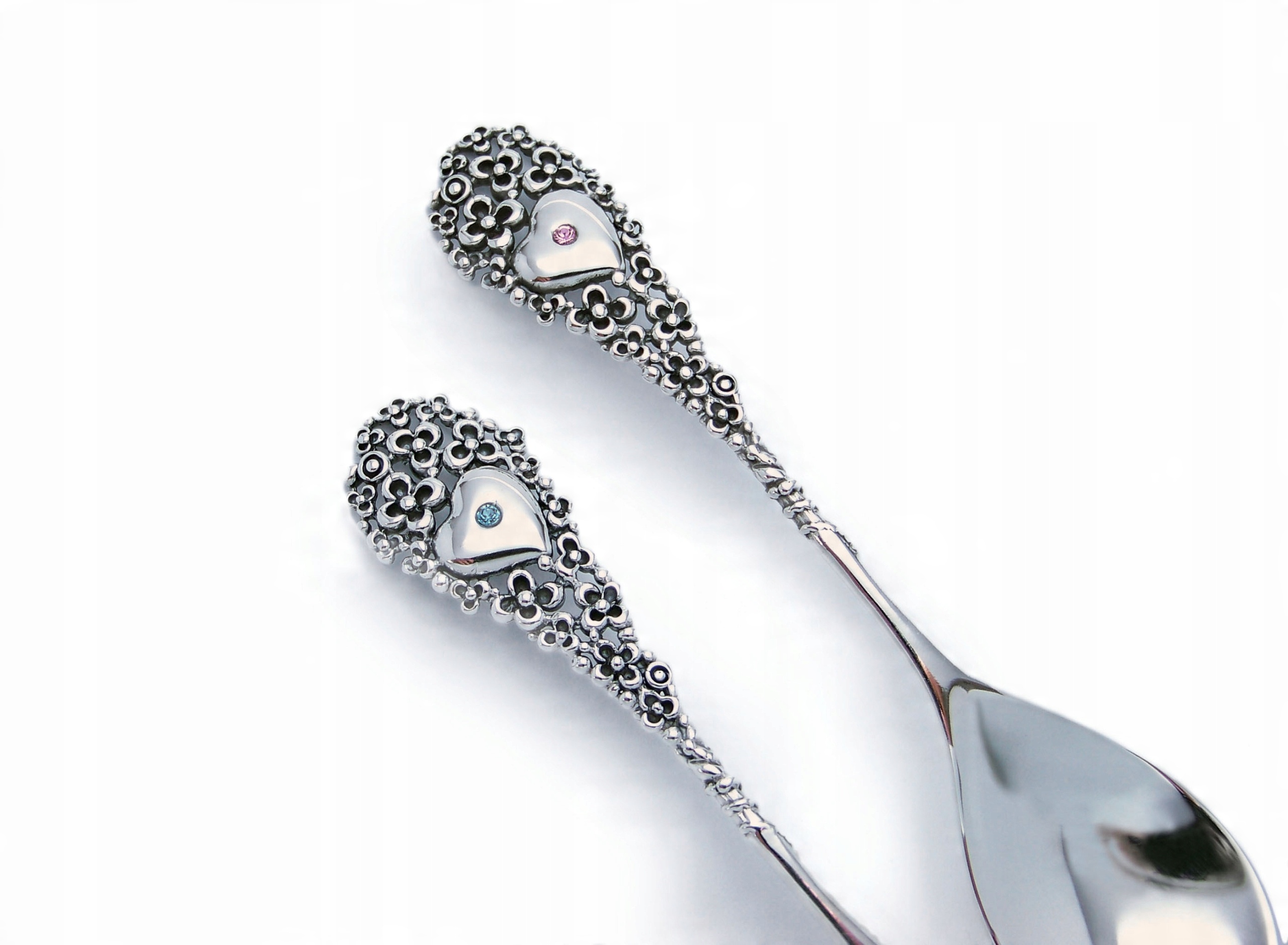 Ложка предназначена как для девочек, так и для мальчиков. Кристалл на сердце будет голубым или розовым.