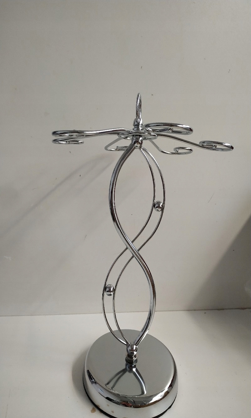 - Высота размера 38 см, основание 15 см, подвесная тарелка 27 см, высота висящей чашки 25 см