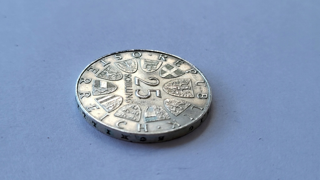 СРІБНА МОНЕТА 999 25 ШИЛІНГІВ АВСТРІЇ ПІТЕР РОЗЕГГЕР 1969 13/10 ГРАМ GWR