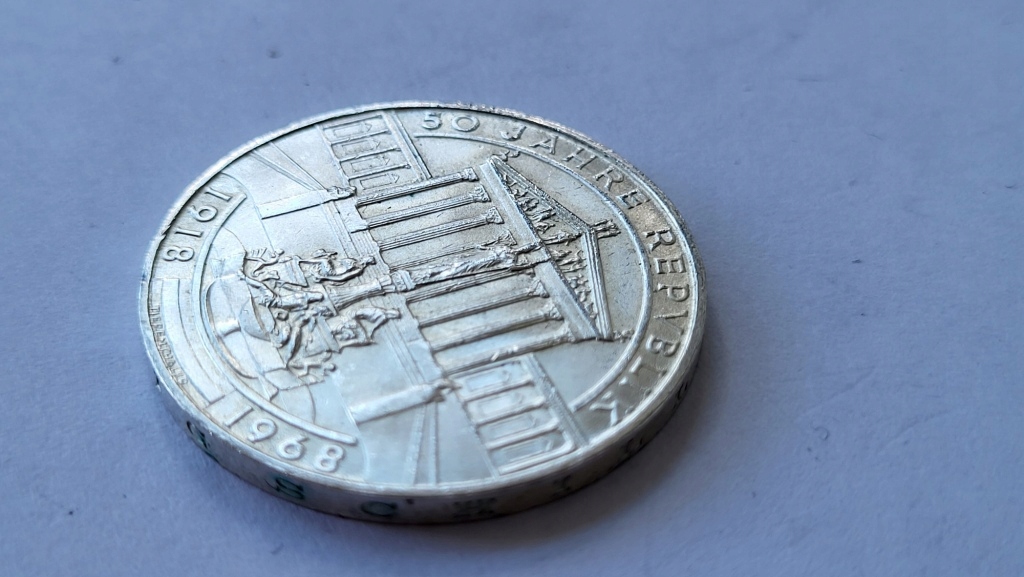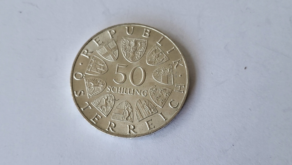 СРІБНА МОНЕТА 999 50 ШІЛІНГІВ АВСТРІЇ 50 ЯХР РЕСПУБЛІКА 1968 20 ГРАМ GWR