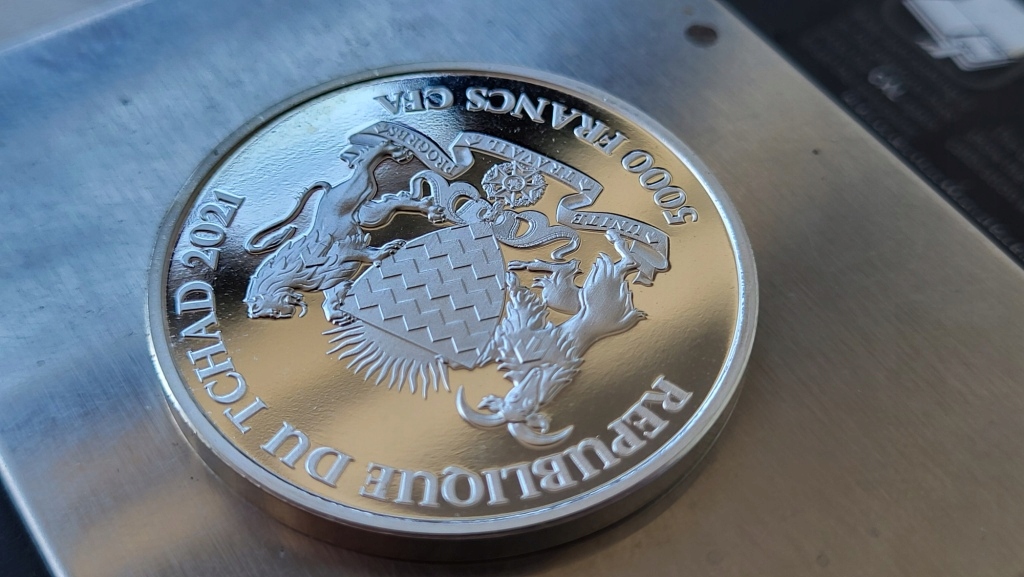 СРІБНА МОНЕТА 999 5000 ФРАНКІВ CFA CHAD WATCHTOW 2021 ДЗЕРКАЛО