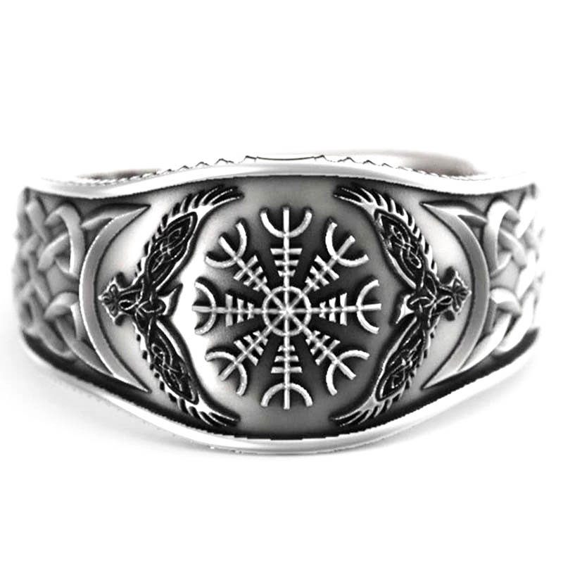 СРІБНА НОРДИЧНА ПЕЧАТКА КІЛЬЦЕ HELM OF AWE EAGLE RING R22