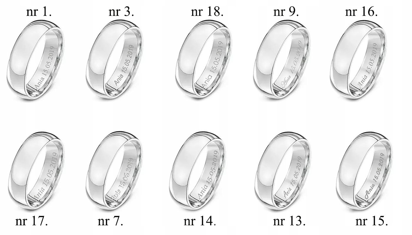 - содержание гравировки (надписи) внутри колец и номер шрифта с фото, рекомендуемый шрифт №. 16