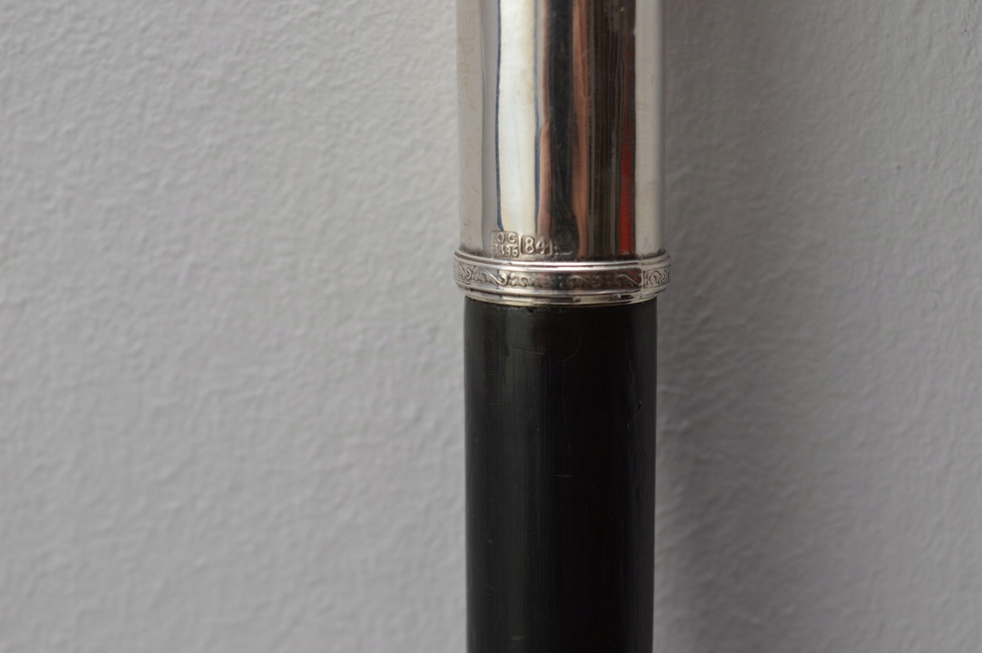 Рукоятка полностью изготовлена из серебра 84 пробы.