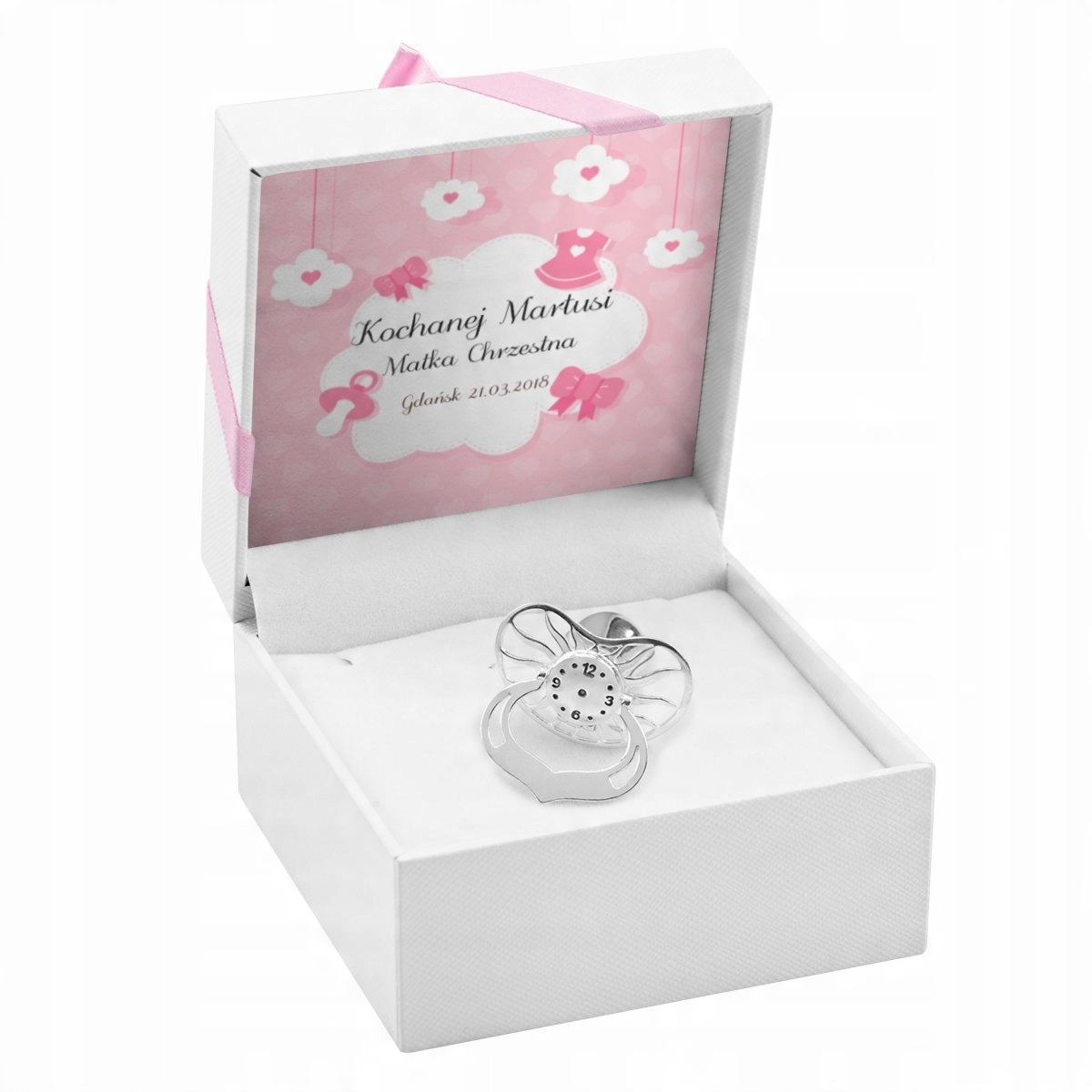 Предлагаем Вам красивую серебряную пустышку с индивидуальной гравировкой. Красивый и незабываемый сувенир по случаю крещения, рождения ребенка, первого дня рождения.