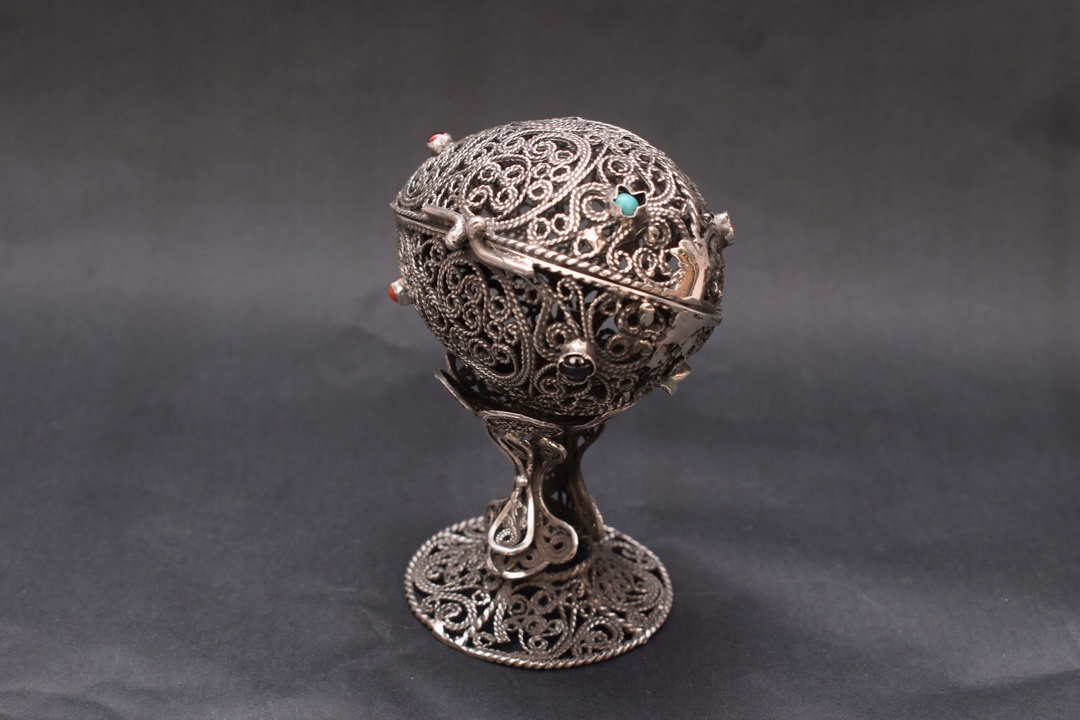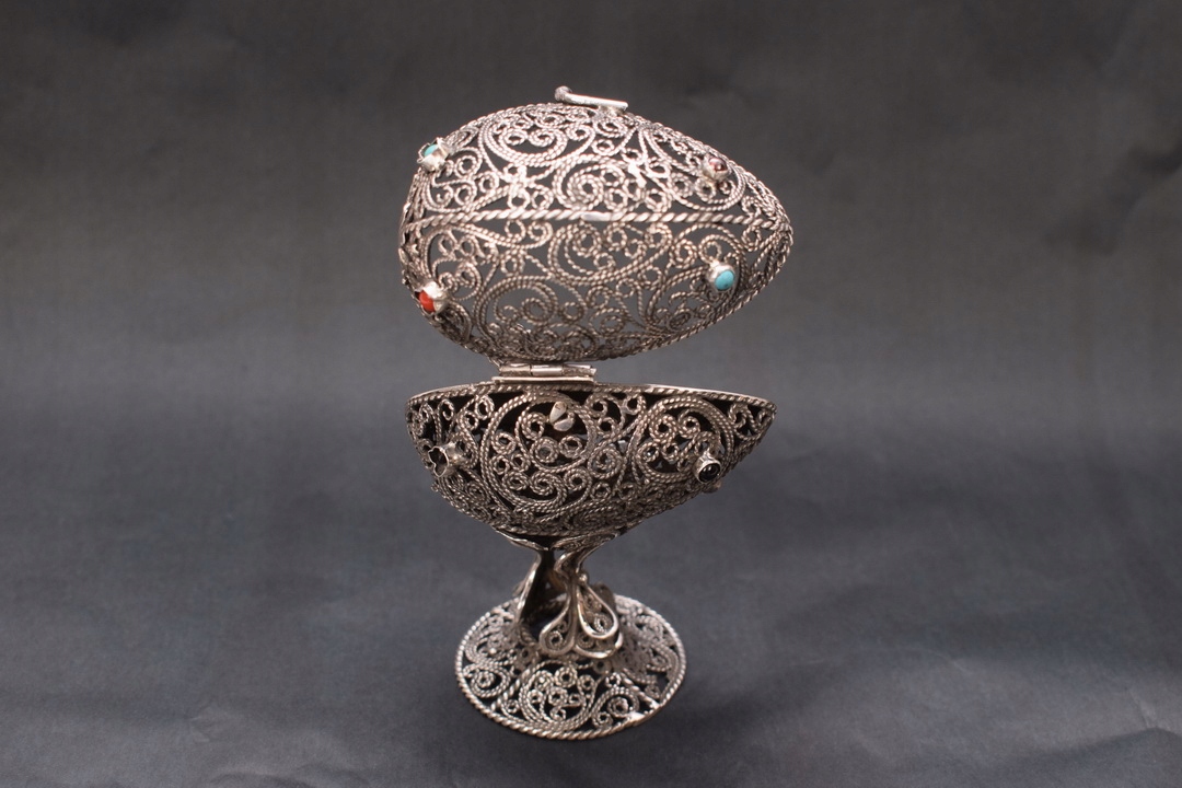 Срібне ажурне єврейське яйце - Egg Russia 84 - Розкрите на підставці