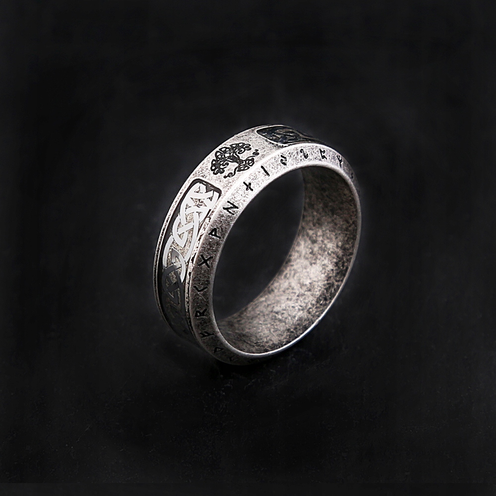 Красивое скандинавское обручальное кольцо с рунами «Древо жизни»
