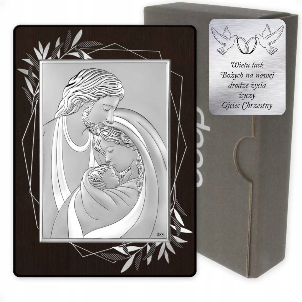 Серебряная картина с изображением Святого Семейства является изображением соединения (причастия) Святых Лиц. В то же время этот образ выражает единение, любовь, жизнь супружеской пары и христианской семьи, стремящейся к святости и созданию общения в собственном браке и семье, что делает его прекрасным подарком на свадьбу или рождение ребенка. ребенок.