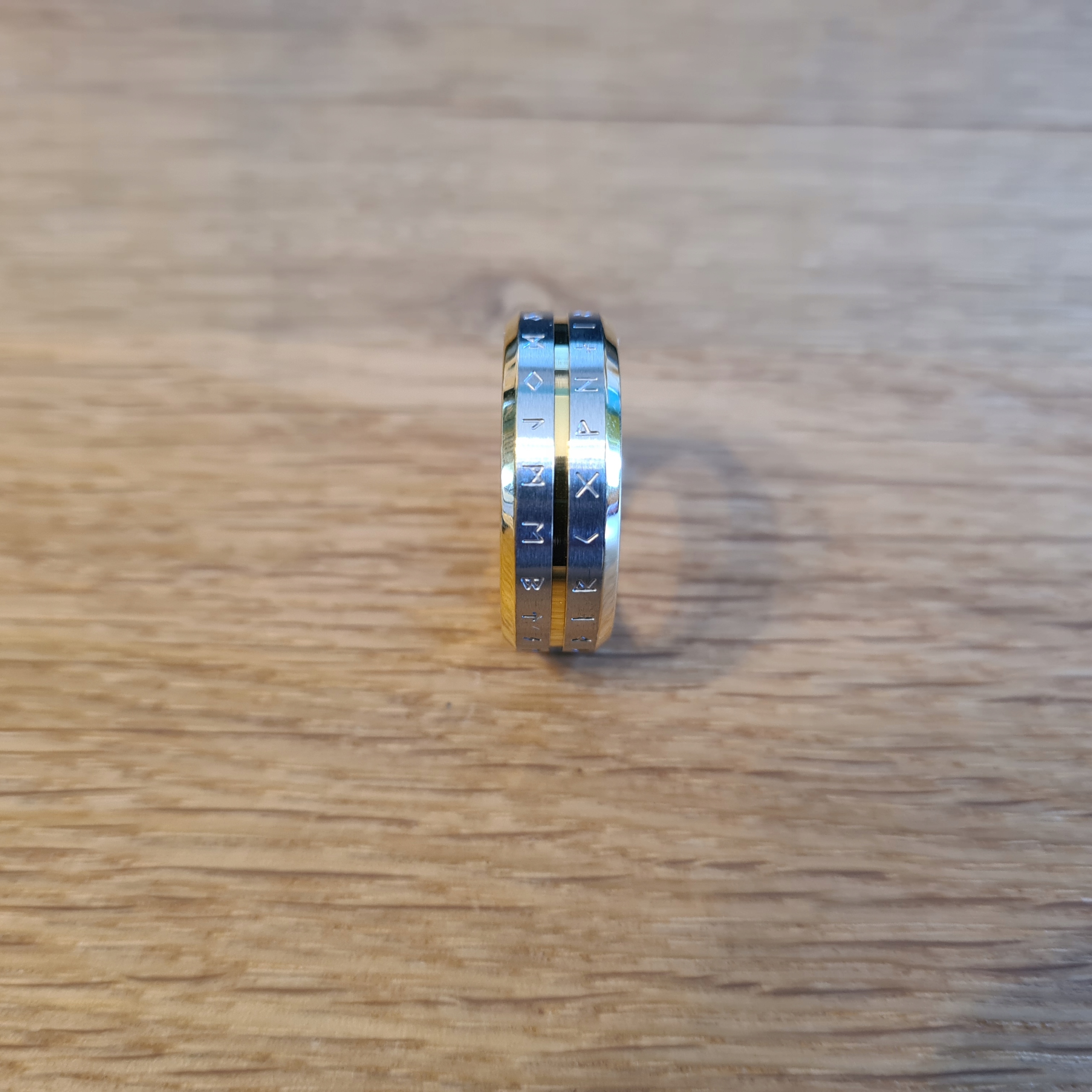 Серебряное и золотое обручальное кольцо со скандинавскими рунами
