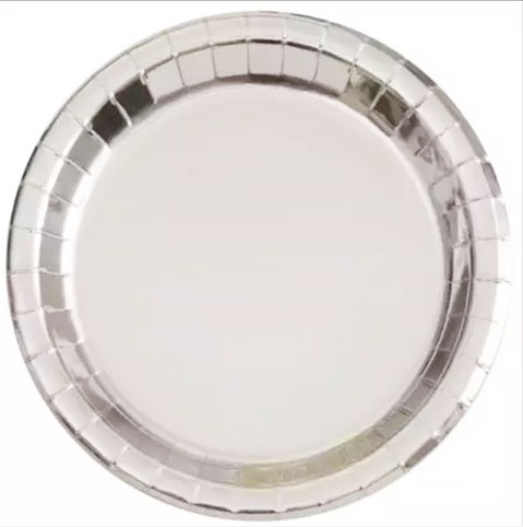 СЕРЕБРЯНЫЕ БУМАЖНЫЕ ТАРЕЛКИ 23 СМ 8 ШТ БОЛЬШОЙ