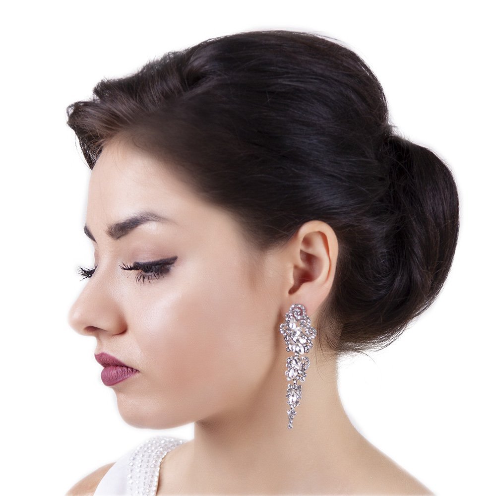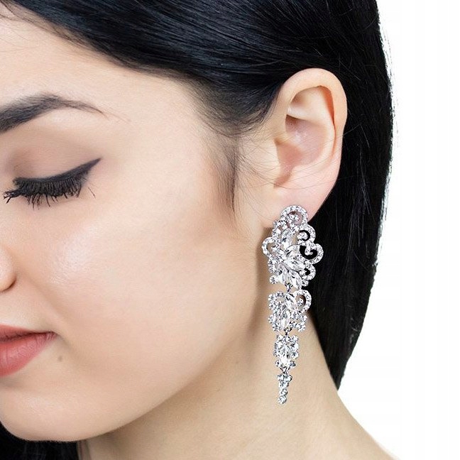 СЕРЬГИ Серебряные с цирконием, длинные СВАДЕБНЫЕ кристаллы - 35179 Miss Glow