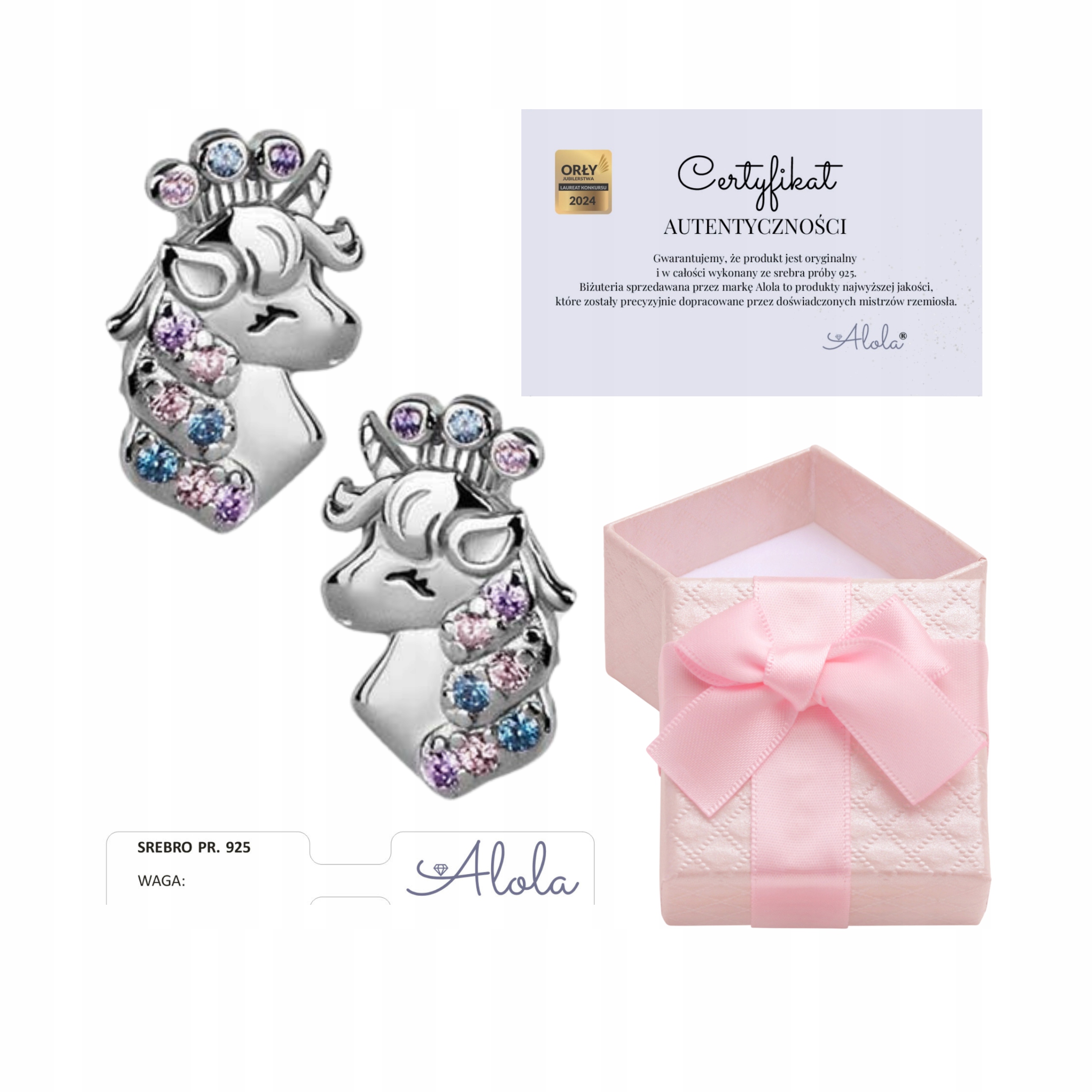 СЕРЕБРЯНЫЕ СЕРЬГИ ДЛЯ ДЕВОЧКИ-ЕДИНОРОГ С ЦИРКОНИЕМ, СТОЙКА С РОДИЕВЫМ ПОКРЫТИЕМ