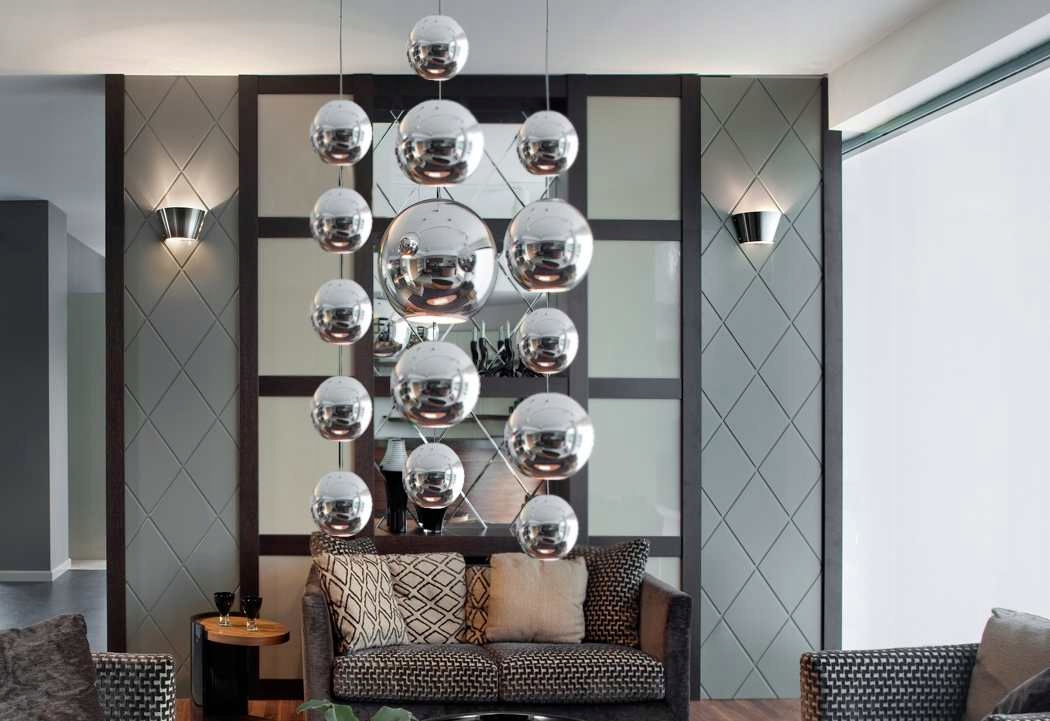 Серебряные, металлические, зеркальные шары на стальной верёвке.